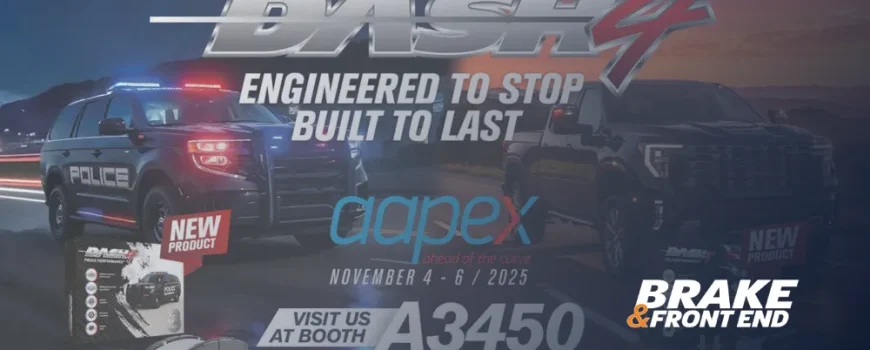 Aftermarket News reports that Dash4 Brake Systems will present its friction program and upgraded brake system lines at AAPEX 2025, located at Booth A3450 in the Venetian Expo. The brand will unveil two major additions — the Police Performance line and the HD Performance line — both engineered to deliver superior stopping power, durability, and heat resistance for professional applications.